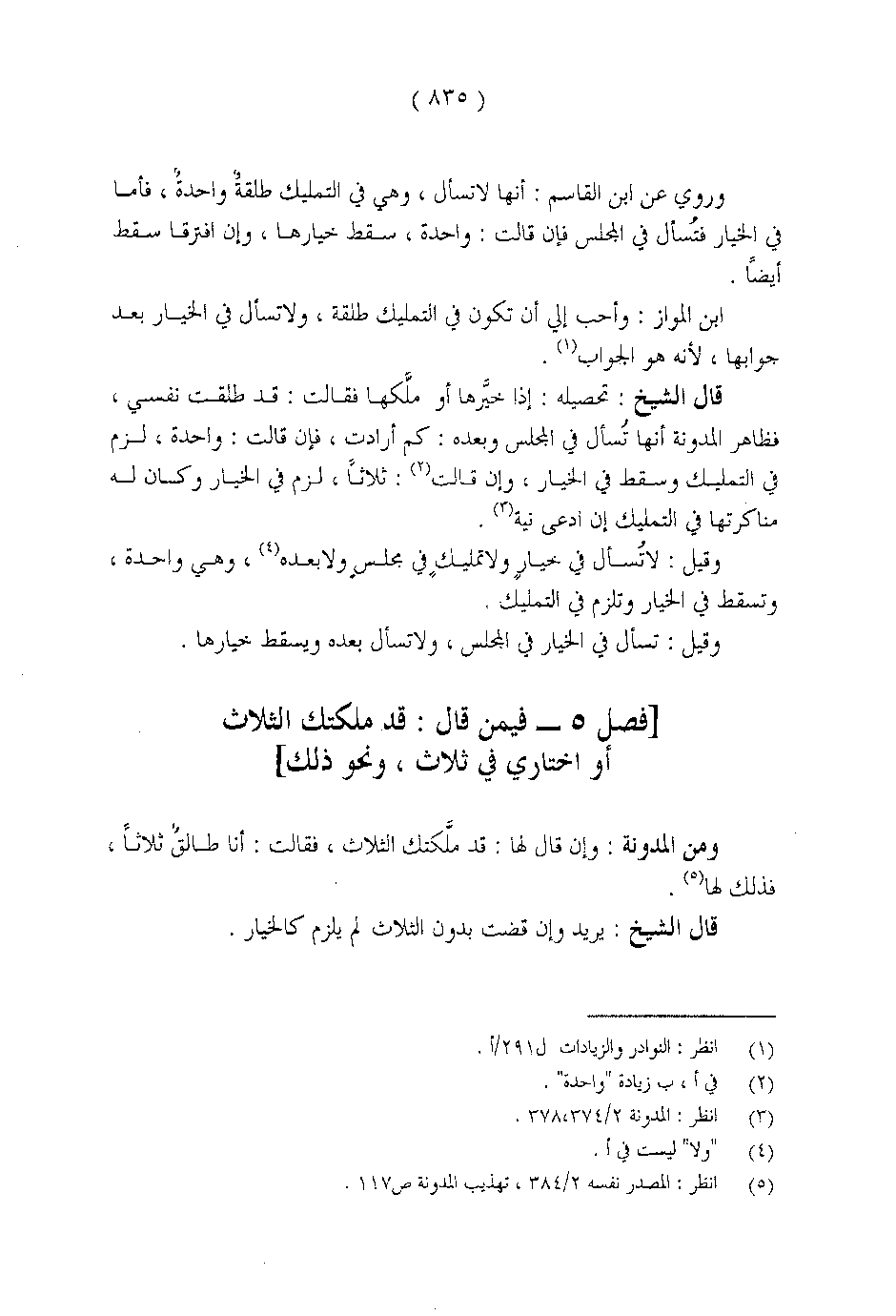 ] فصل 5 - فيمن قال: قد ملكتك الثلاث أو اختاري في ثلاث, ونحو ذلك [