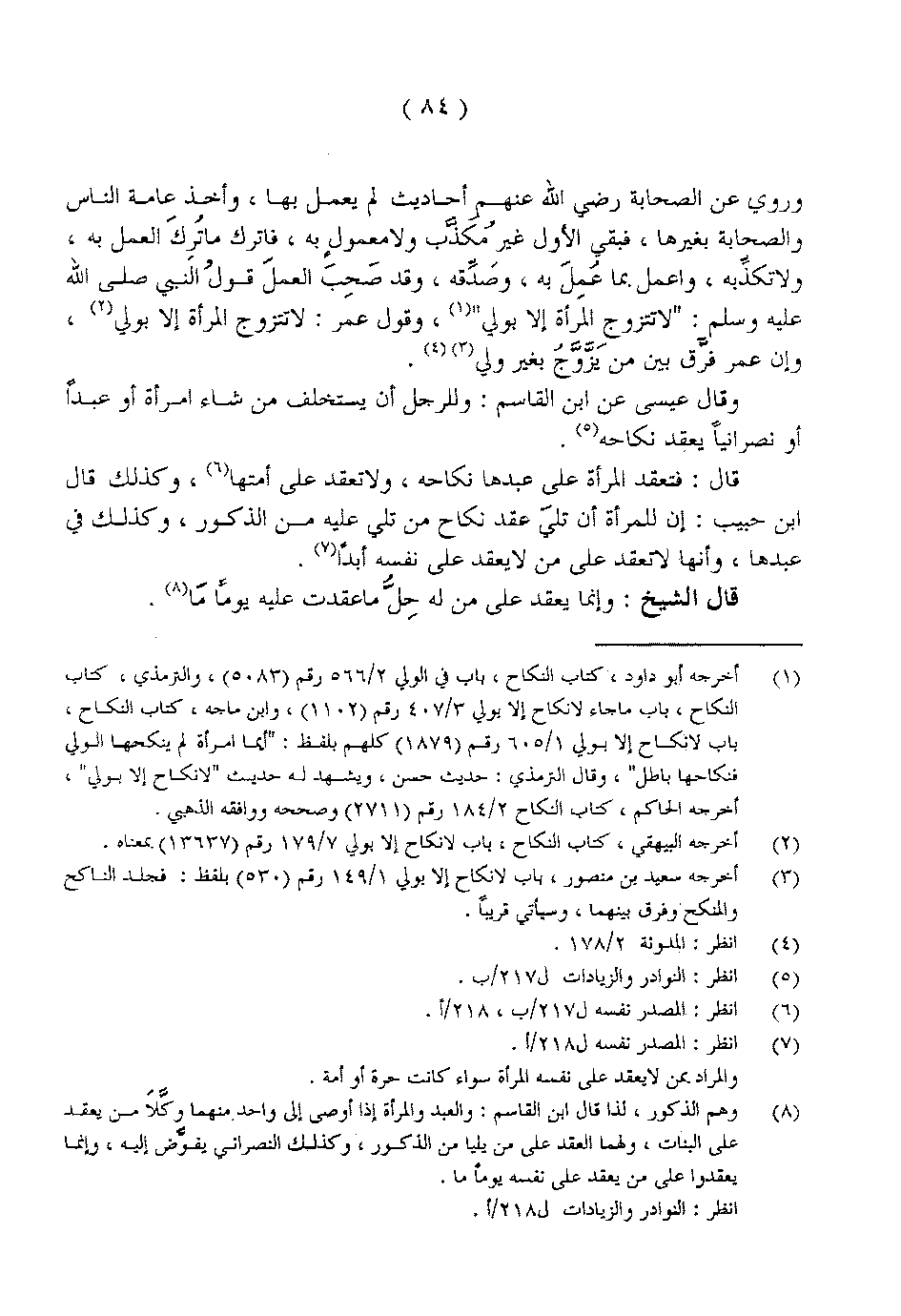 وروي عن الصحابة رضي الله عنهم أحاديث لم يعمل بها، وأخذ عامة الناس والصحابة بغيرها، فبقي الأول غير مُكَذَّب ولا معمول به، فاترك ما تُرِكَ العمل به، ولا تكذِّبه، واعمل بما عُمِلَ به، وصَدِّقه، وقد صَحِبَ العملَ قولُ النبي صلى الله عليه وسلم: «لا تتزوج المرأة إلا بولي»، وقول عمر: لا تتزوج المرأة إلا بولي، وإن عمر فرَّق بين من يَزَّوَّجُ بغير ولي.