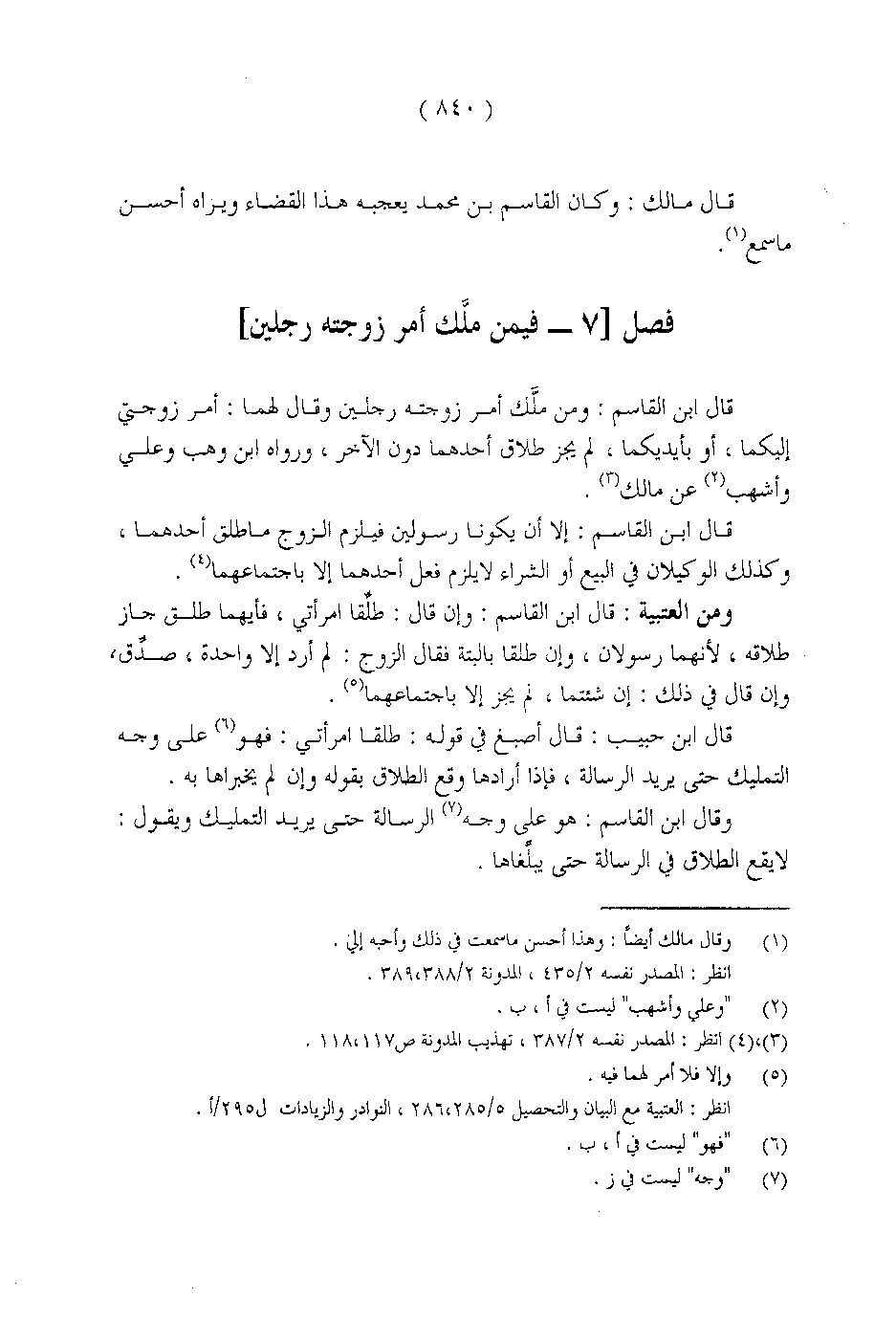 فصل] 7 - فيمن ملك أمر زوجته رجلين [
