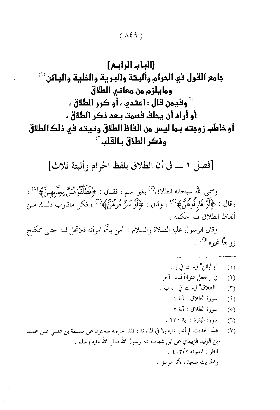[فصل 1 - في أن الطلاق بلفظ الحرام وألبتة ثلاث]