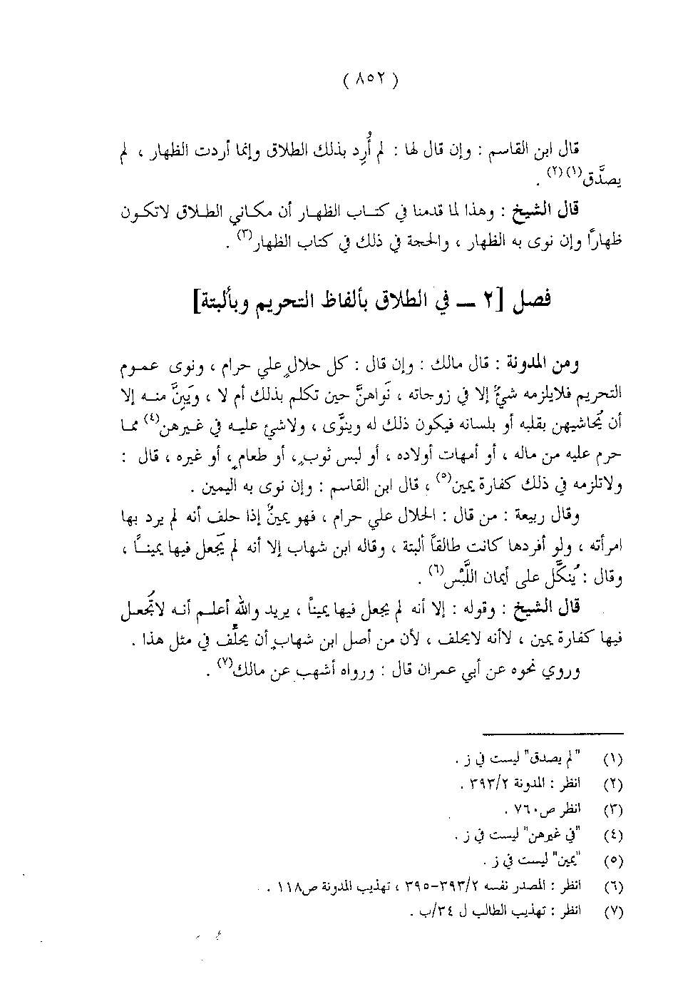 فصل [2 - في الطلاق بألفاظ التحريم وبألبتة]