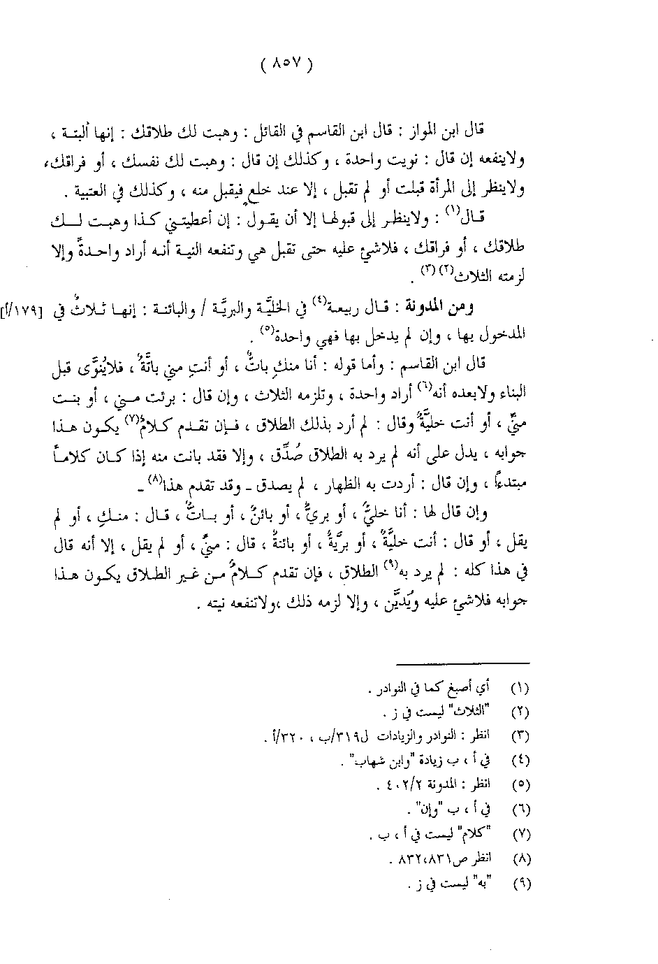 قال ابن المواز: قال ابن القاسم في القائل: وهبت لك طلاقك: إنها ألبتة، ولا ينفعه إن قال: نويت واحدة، وكذلك إن قال: وهبت لم نفسك، أو فراقك، ولا ينظر إلى المرأة قبلت أو لم تقبل، إلا عند خلع فيقبل منه، وكذلك في العتبية.