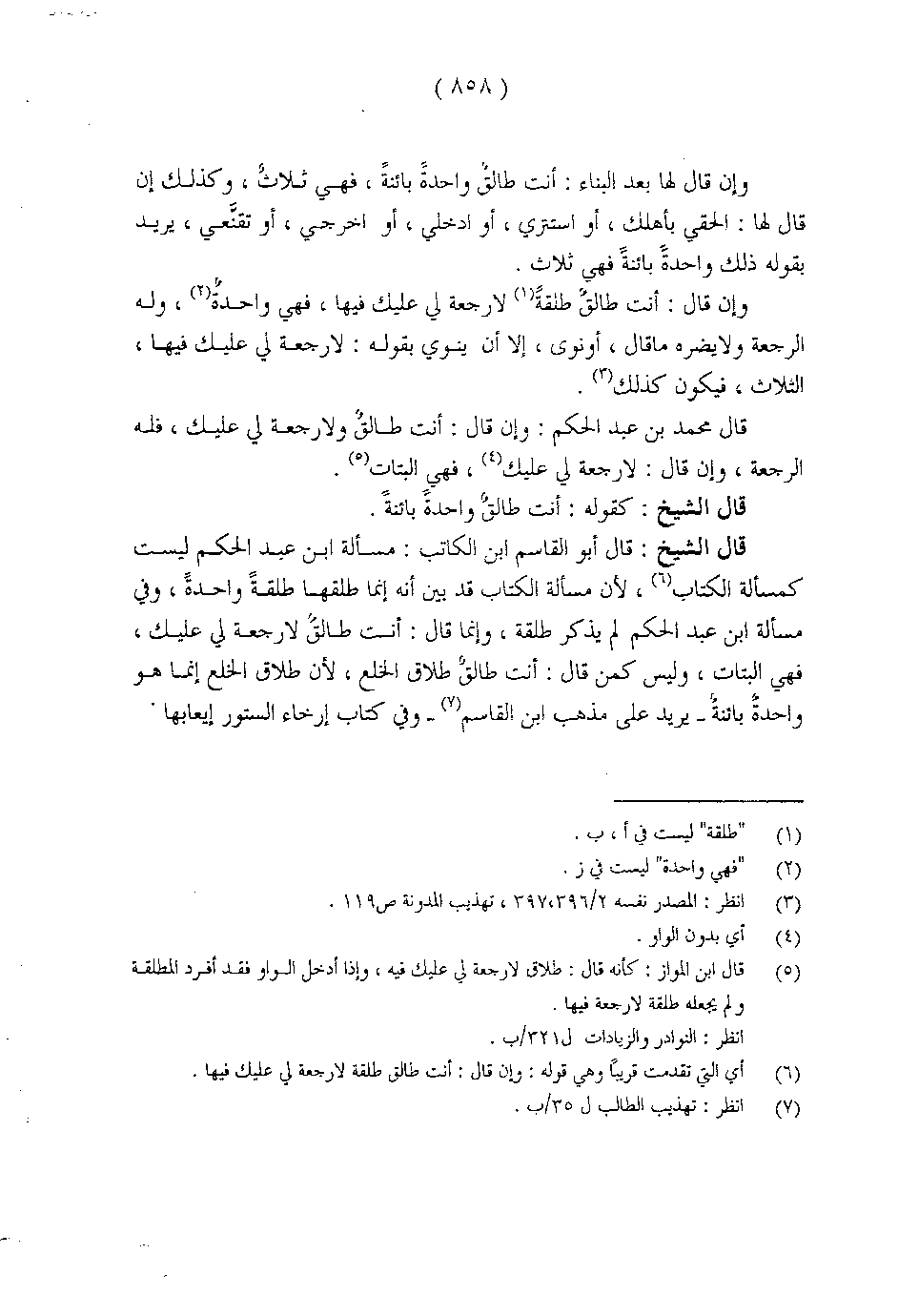 قال الشيخ: قال أبو القاسم ابن الكاتب: مسألة ابن عبد الحكم ليست كمسألة الكتاب، لأن مسألة الكتاب قد بين أنه إنما طلقها طلقةً واحدةً، وفي مسألة ابن عبد الحكم لم يذكر طلقة، وإنما قال: أنت طالق طلاق الخلع، لأن طلاق الخلع إنما هو واحدة بائنة - يريد عل مذهب ابن القاسم - وفي كتاب إرخاء الستور إيعابها.