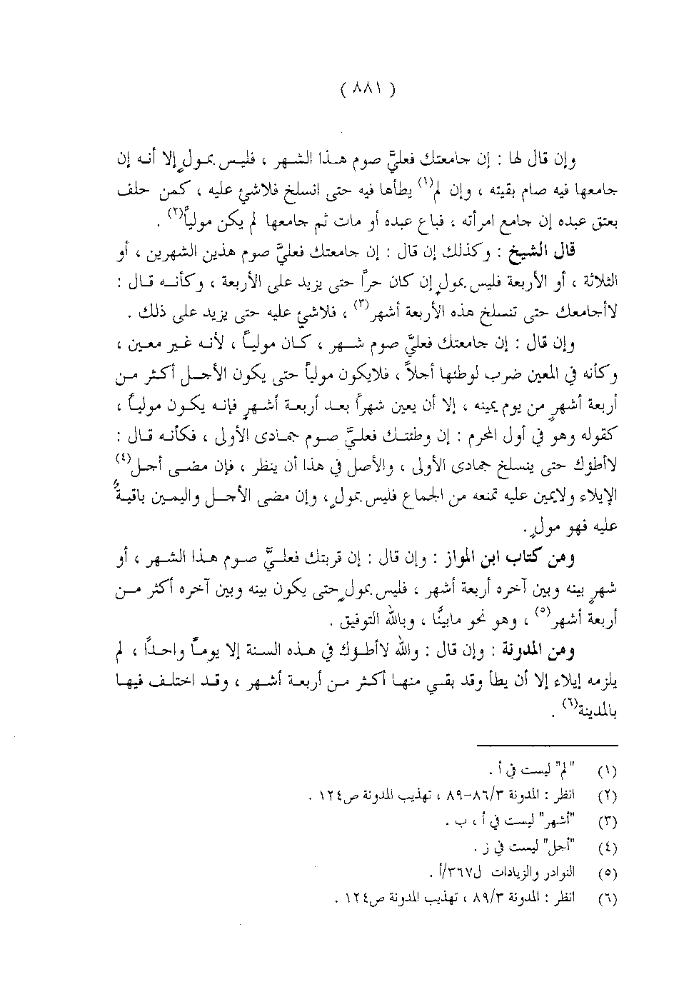 قال الشيخ: وكذلك إن قال: إن جامعتك فعليَّ صوم هذين الشهرين، أو الثلاثة، أو الأربع فليس بمولٍ إن كان حراً حتى يزيد على الأربعة، وكأنه قال: لا أجامعك حتى تنسلخ هذه الأربعة أشهر، فلا شيء عليه حتى يزيد على ذلك.