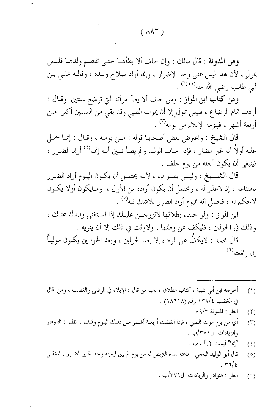 ومن المدونة: قال مالك: وإن حلف ألا يطأها حتى تفطم ولدها فليس بمولٍ، لأن هذا ليس على وجه الإضرار، وإنما أراد صلاح ولده، وقاله علي بن أبي طالب رضي الله عنه.