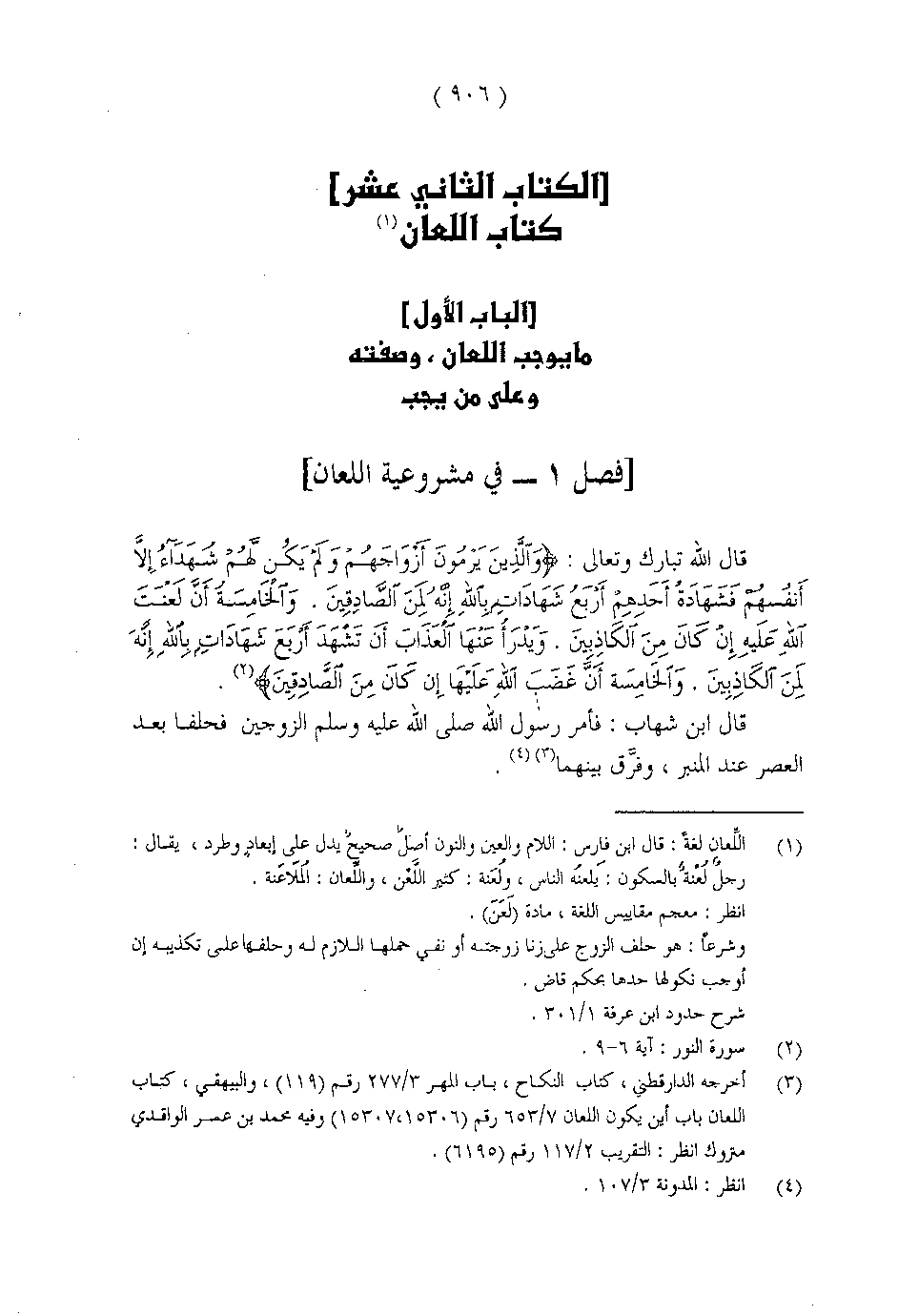 قال الله تبارك وتعالى: {وَالَّذِينَ يَرْمُونَ أَزْوَاجَهُمْ وَلَمْ يَكُنْ لَهُمْ شُهَدَاءُ إِلَّا أَنْفُسُهُمْ فَشَهَادَةُ أَحَدِهِمْ أَرْبَعُ شَهَادَاتٍ بِاللَّهِ إِنَّهُ لَمِنَ الصَّادِقِينَ وَالْخَامِسَةُ أَنَّ لَعْنَةَ اللَّهِ عَلَيْهِ إِنْ كَانَ مِنَ الْكَاذِبِينَ وَيَدْرَأُ عَنْهَا الْعَذَابَ أَنْ تَشْهَدَ أَرْبَعَ شَهَادَاتٍ بِاللَّهِ إِنَّهُ لَمِنَ الْكَاذِبِينَ وَالْخَامِسَةَ أَنَّ غَضَبَ اللَّهِ عَلَيْهَا إِنْ كَانَ مِنَ الصَّادِقِينَ}.