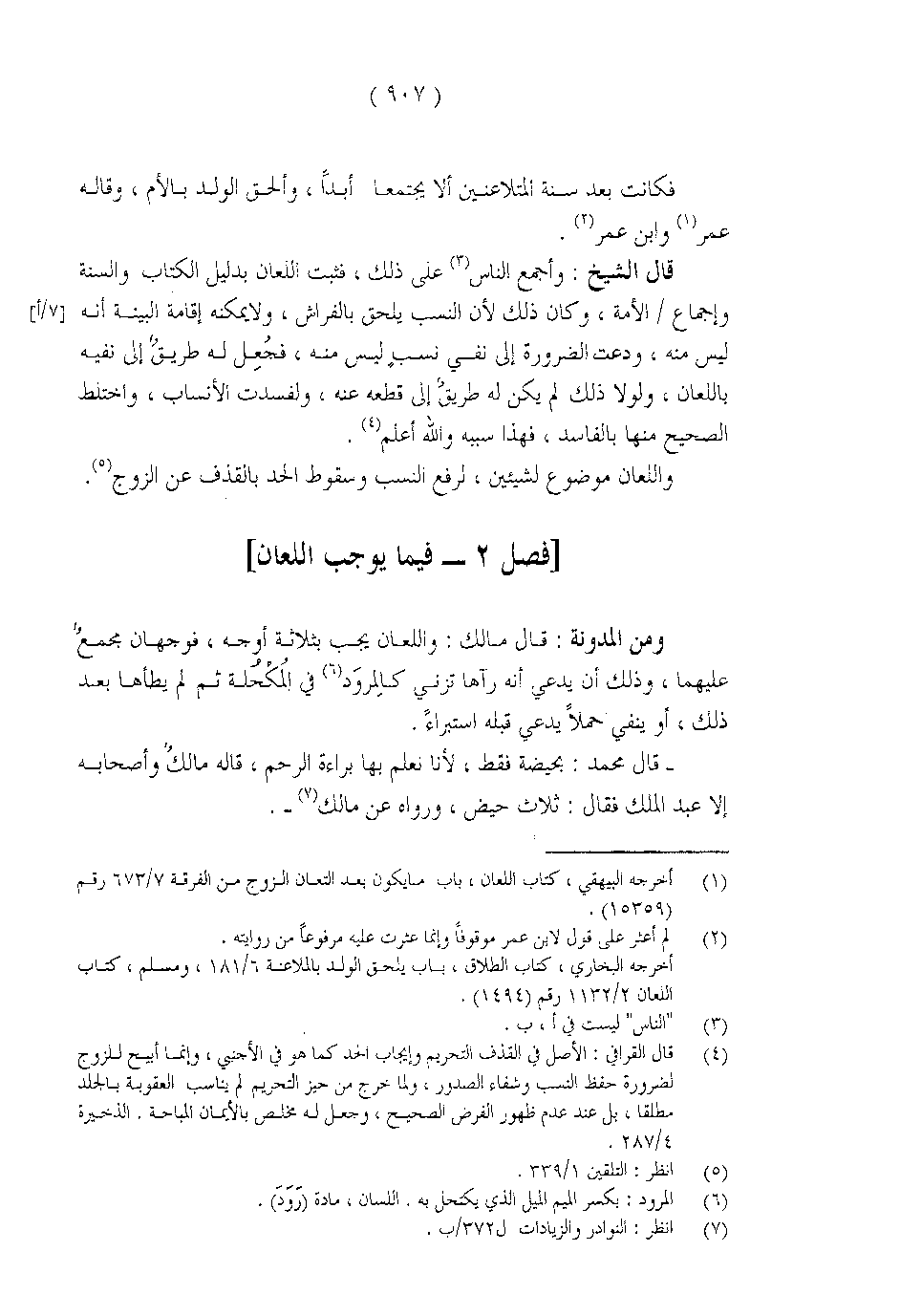 قال الشيخ: وأجمع الناس على ذلك، فثبت اللعان بدليل الكتاب والسنة وإجماع / الأمة، وكان ذلك لأن النسب يلحق بالفراش، ولا يمكنه إقامة البيئة أنه ليس منه، ودعت الضرورة إلى نفي نسبٍ ليس منه، فجُعِل له طريقً إلى نفيه باللعان، ولولا ذلك لم يكن له طريقً إلى قطعة عنه، ولفسدت الأنساب، واختلط الصحيح منها بالفاسد، فهذا سببه والله أعلم.