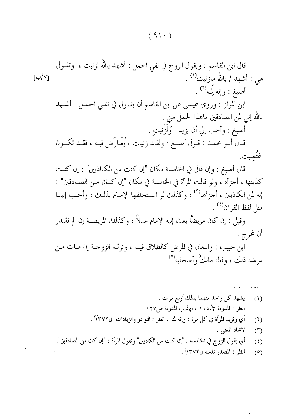 ابن المواز: وروى عيسى عن ابن القاسم أن يقول في نفي الحمل: أشهد بالله إني لمن الصادقين ما هذا الحمل مني.