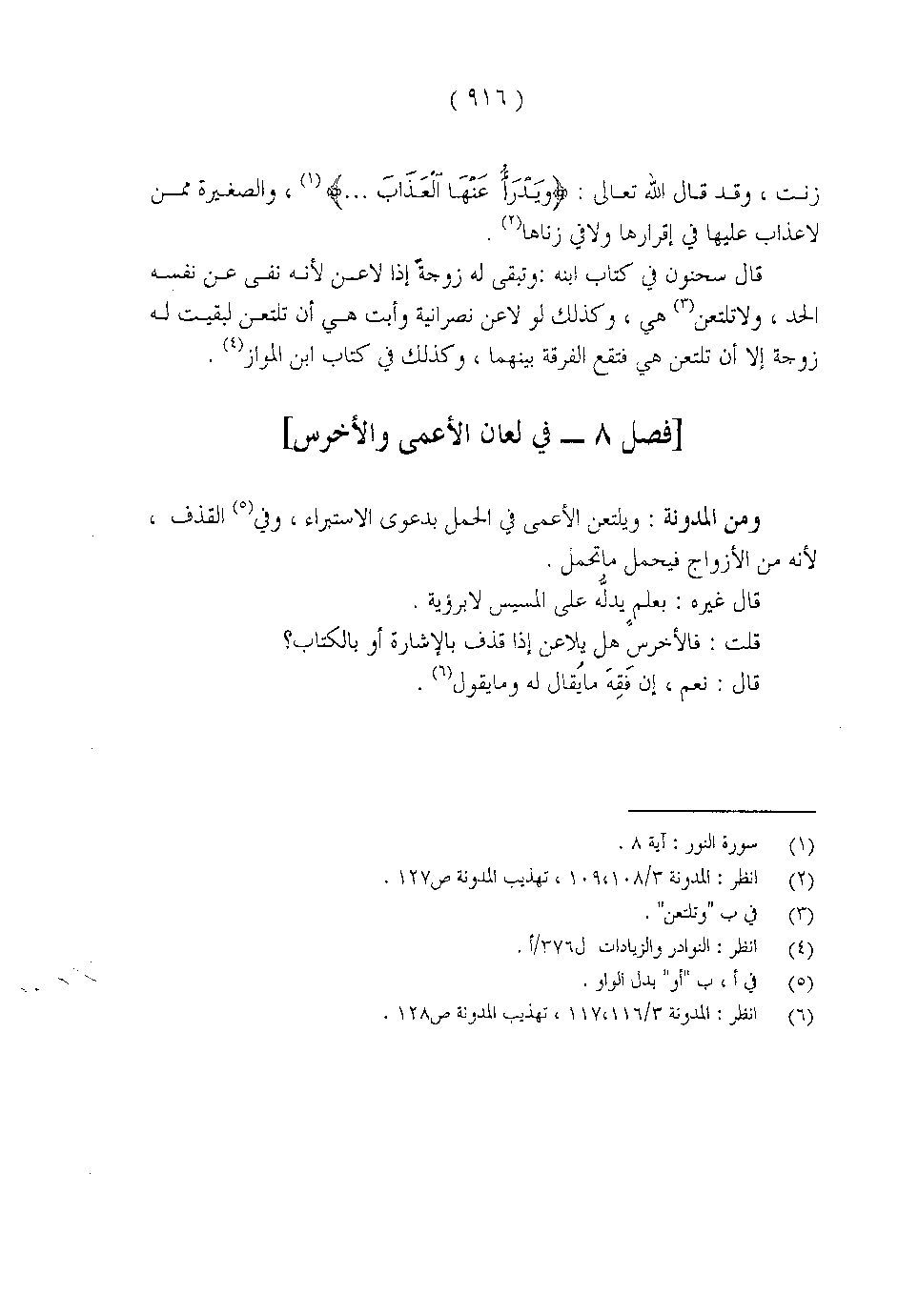 قال سحنون في كتاب ابنه: وتبقي له زوجةً إذا لاعن أنه نفى عن نفسه الحد، ولا تلتعن هي، وكذلك لولا عن نصرانية وأبت هي أن تلتعن لبقيت له زوجة إلا أن تلتعن هب فتقع الفرقة بينهما، وكذلك في كتاب ابن المواز.