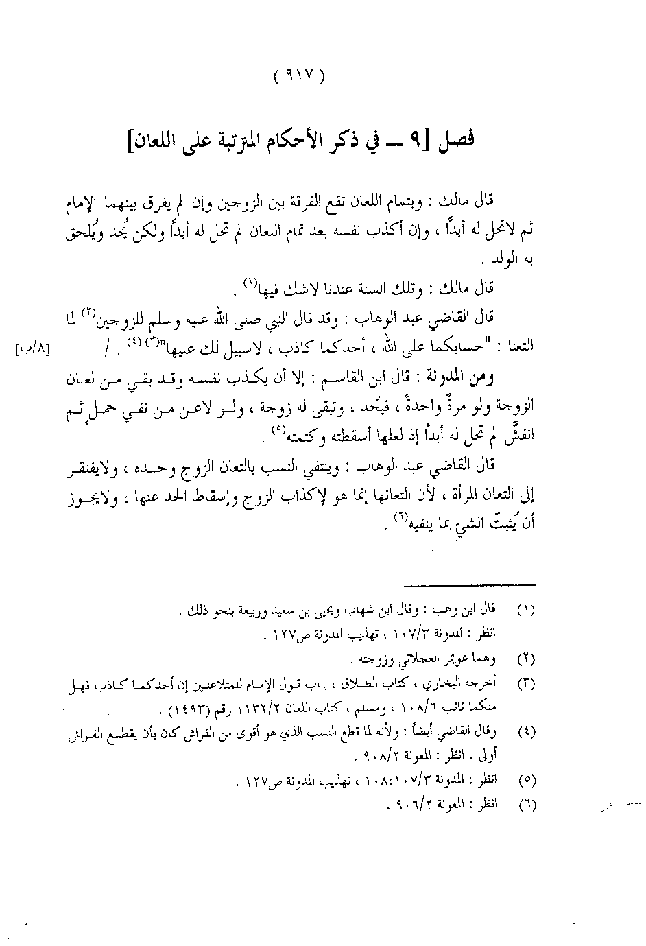ومن المدونة: قال ابن القاسم: إلا أن يكذب نفسه وقد بقي من لعان الزوجة ولو مرةً واحدةً، فيُحد، وتبقى له زوجة، ولولا عن من نفي حملٍ ثم انقشَّ لم تحل له أبداً إذ لعلها أسقطته وكتمته.