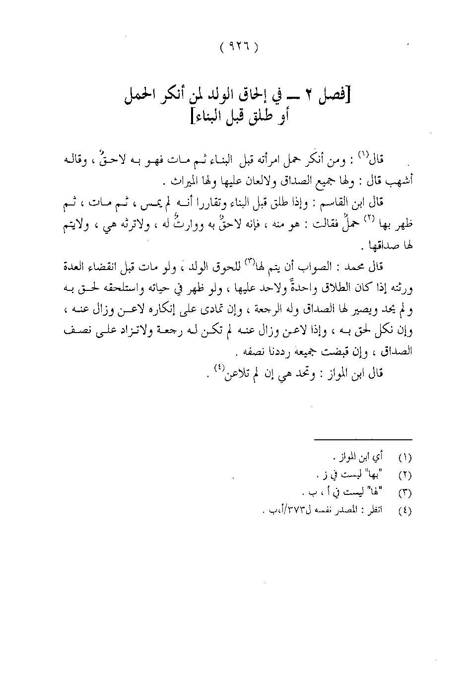 [فصل 2 - في إلحاق الولد لمن أنكر الحمل