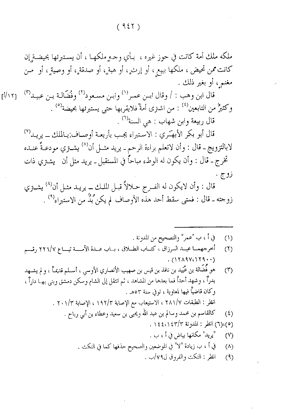 ملكه ملك أمة كانت في حوز غيره، بأي وجهٍ ملكها، أن يستبرتها بحيضةٍ إن كانت ممن تحيض، ملكها ببيعٍ، أو إرثٍ، أو هبةٍ، أو صدقةٍ، أو وصيةٍ، أو من مغنمٍ، أو بغير ذلك.