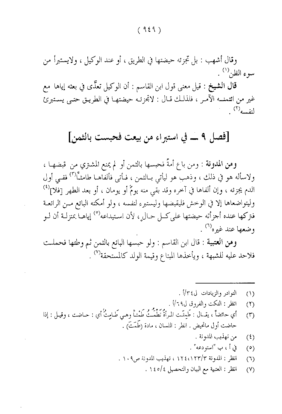 [فصل 9 - في استبراء من بيعت فحبست بالثمن]