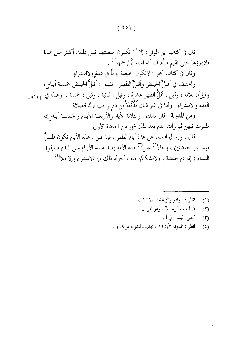 ومن المدنة: قال مالك: والثلاثة أيام والأربعة الأيام والخمسة أيامٍ إذا طهرت فيهن ثم رأت الدم بعد ذلك فهو من الحيضة الأولى.