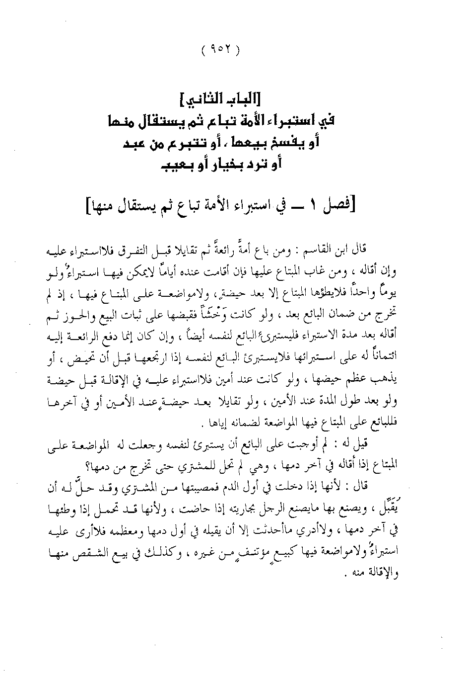 [فصل 1 - في استبراء الأمة تباع ثم يستقال منها]