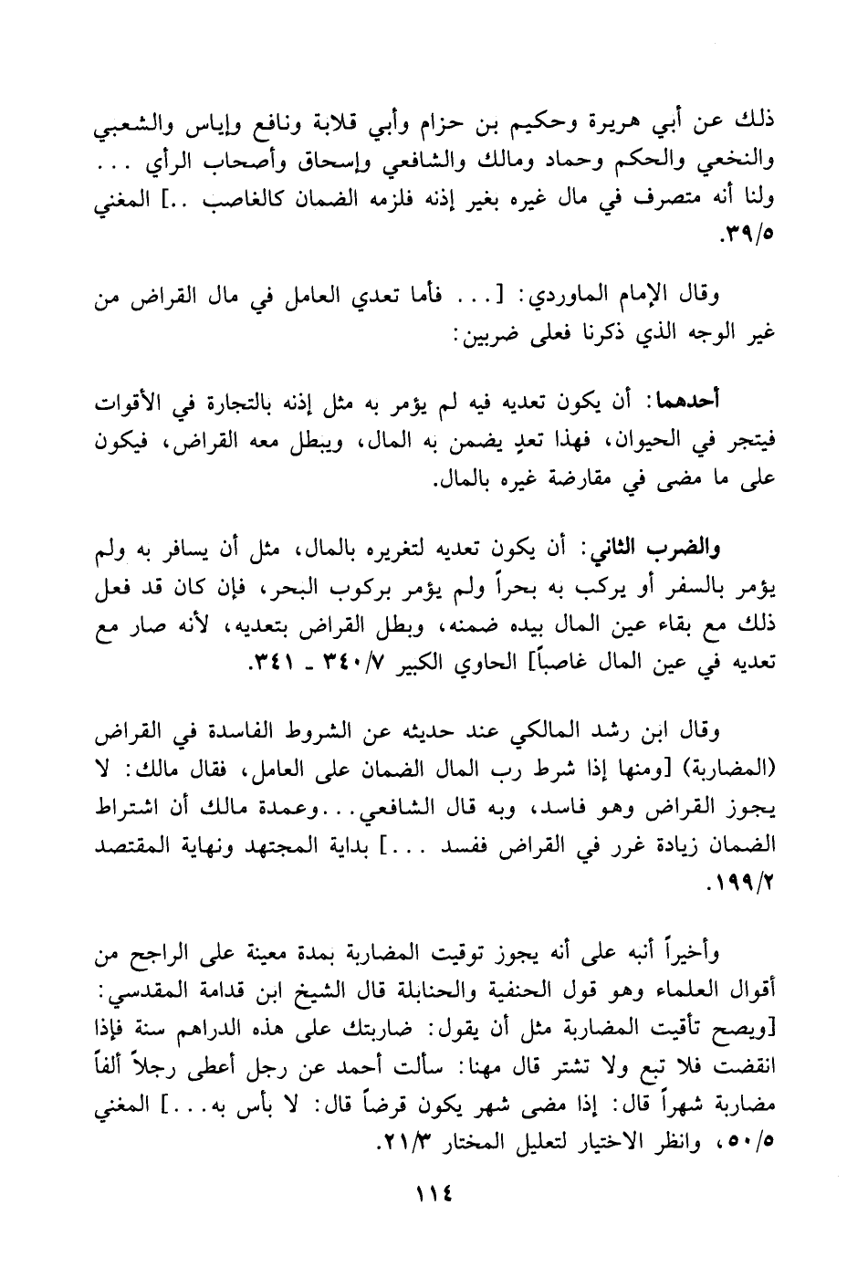 والضرب الثاني: أن يكون تعديه لتغريره بالمال، مثل أن يسافر به ولم يؤمر بالسفر أو يركب به بحراً ولم يؤمر بركوب البحر، فإن كان قد فعل ذلك مع بقاء عين المال بيده ضمنه، وبطل القراض بتعديه، لأنه صار مع تعديه في عين المال غاصباً] الحاوي الكبير 7/ 340 - 341.