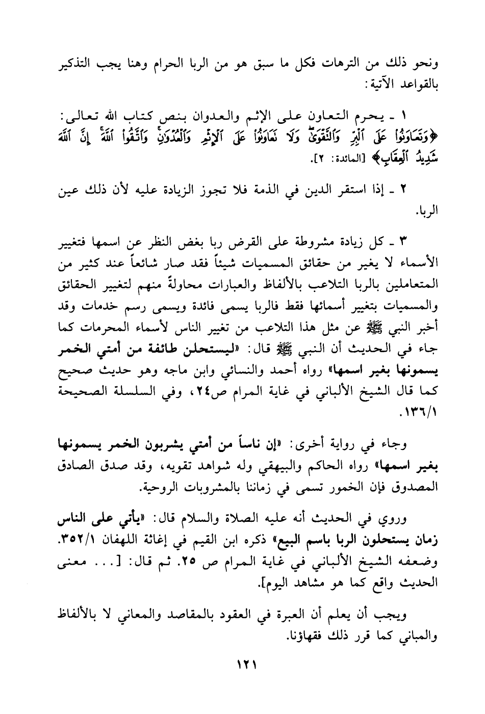 ونحو ذلك من الترهات فكل ما سبق هو من الربا الحرام وهنا يجب التذكير بالقواعد الآتية: