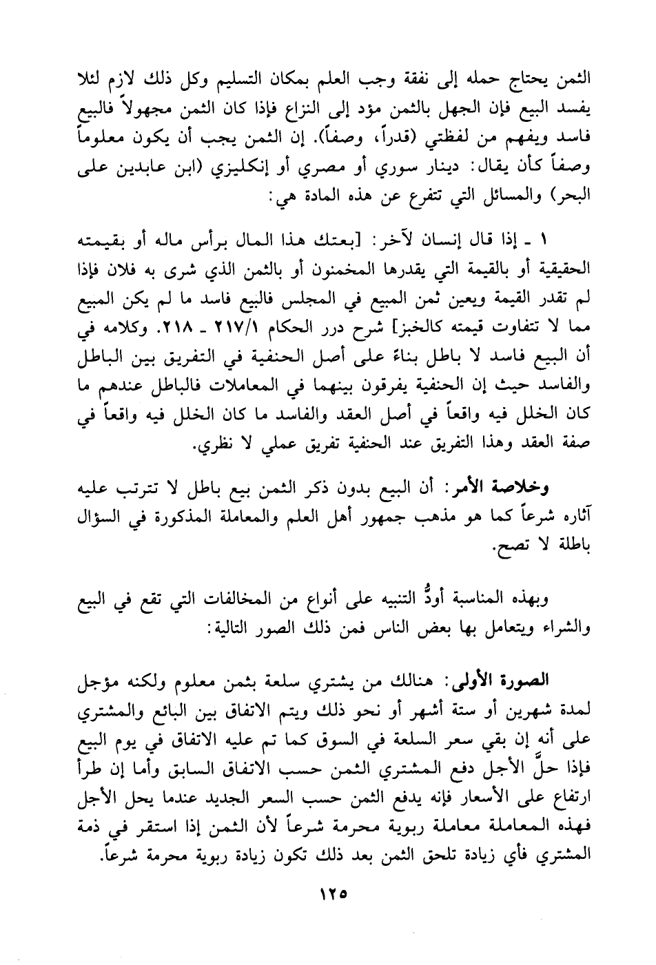 الصورة الأولى: هنالك من يشتري سلعة بثمن معلوم ولكنه مؤجل لمدة شهرين أو ستة أشهر أو نحو ذلك ويتم الاتفاق بين البائع والمشتري على أنه إن بقي سعر السلعة في السوق كما تم عليه الاتفاق في يوم البيع فإذا حلَّ الأجل دفع المشتري الثمن حسب الاتفاق السابق وأما إن طرأ ارتفاع على الأسعار فإنه يدفع الثمن حسب السعر الجديد عندما يحل الأجل فهذه المعاملة معاملة ربوية محرمة شرعاً لأن الثمن إذا استقر في ذمة المشتري فأي زيادة تلحق الثمن بعد ذلك تكون زيادة ربوية محرمة شرعاً.