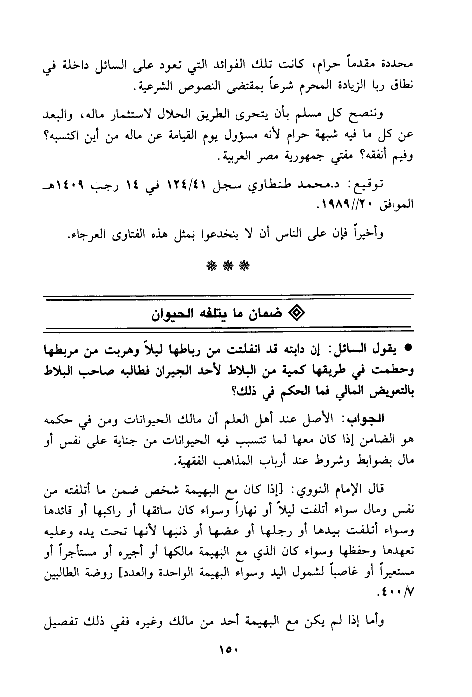 توقيع: د. محمد طنطاوي سجل 41/ 124 في 14 رجب 1409هـ الموافق 20/ 2/1989.