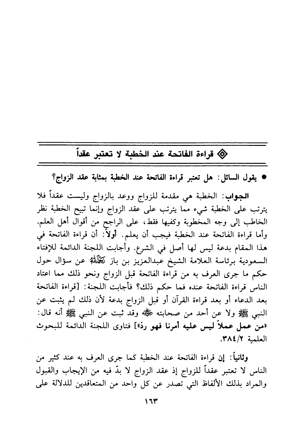 يقول السائل: هل تعتبر قراءة الفاتحة عند الخطبة بمثابة عقد الزواج؟