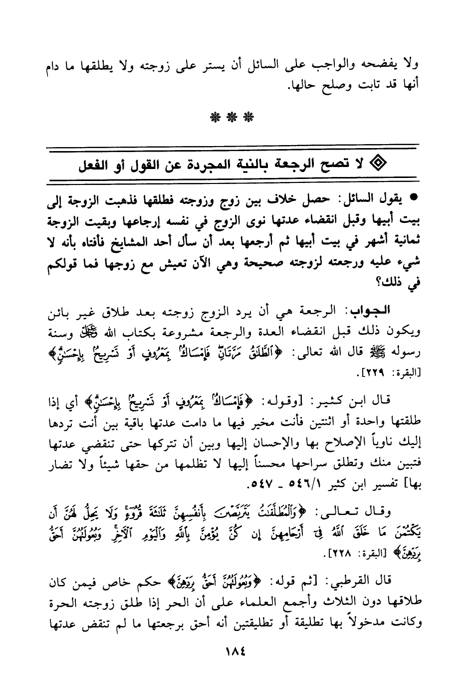 لا تصح الرجعة بالنية المجردة عن القول أو الفعل