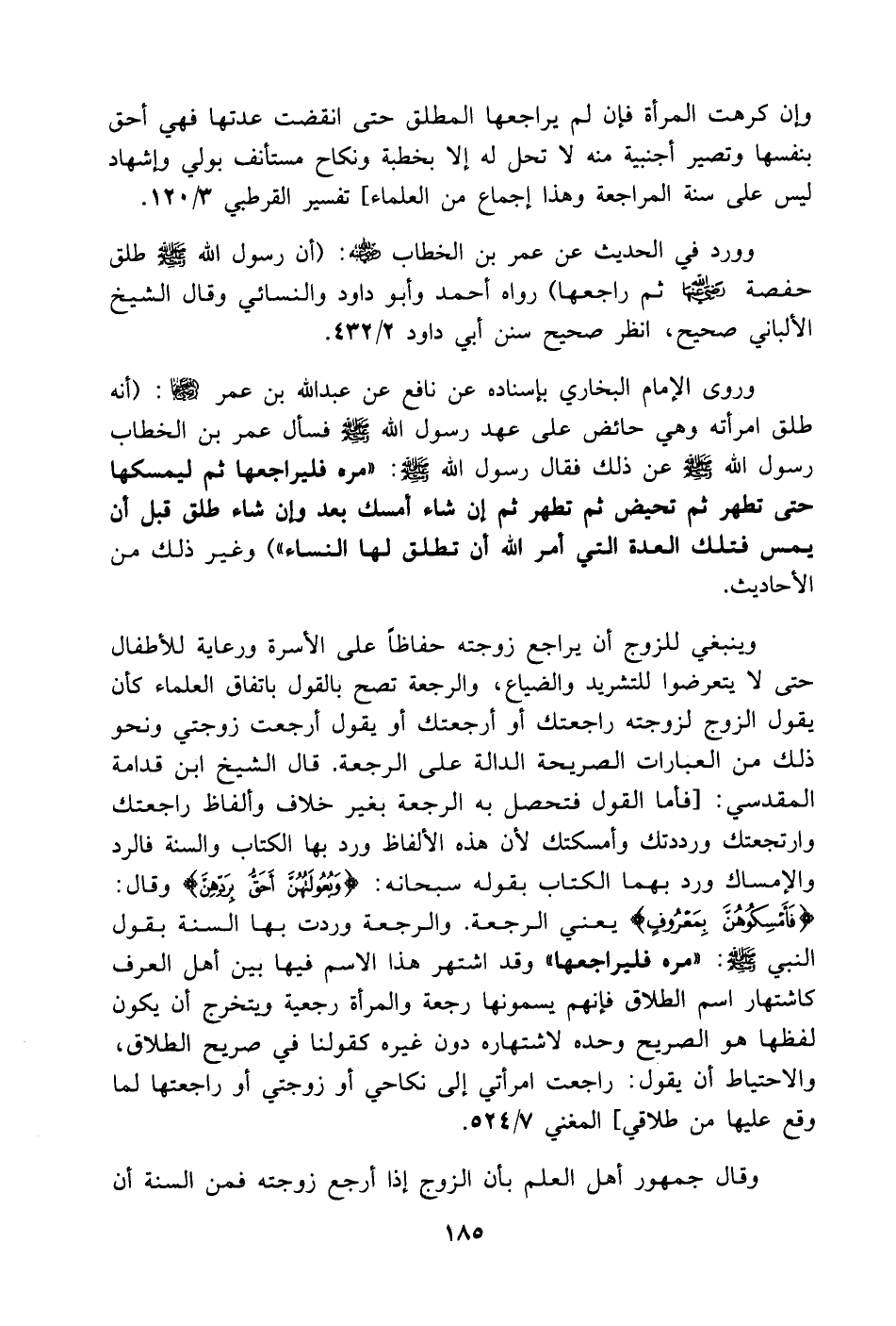 وقال جمهور أهل العلم بأن الزوج إذا أرجع زوجته فمن السنة أن