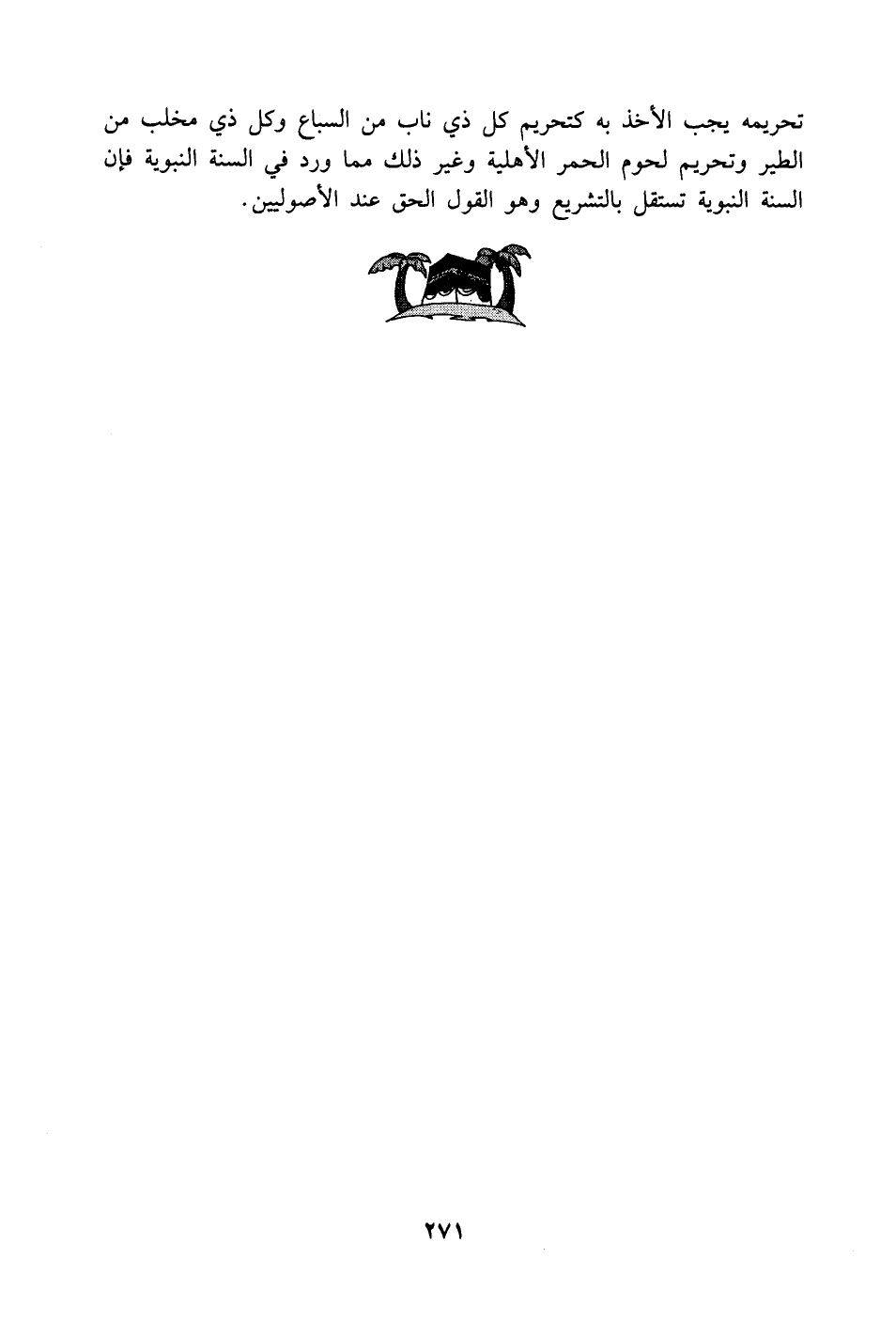 تحريمه يجب الأخذ به كتحريم كل ذي ناب من السباع وكل ذي مخلب من الطير وتحريم لحوم الحمر الأهلية وغير ذلك مما ورد في السنة النبوية فإن السنة النبوية تستقل بالتشريع وهو القول الحق عند الأصوليين.