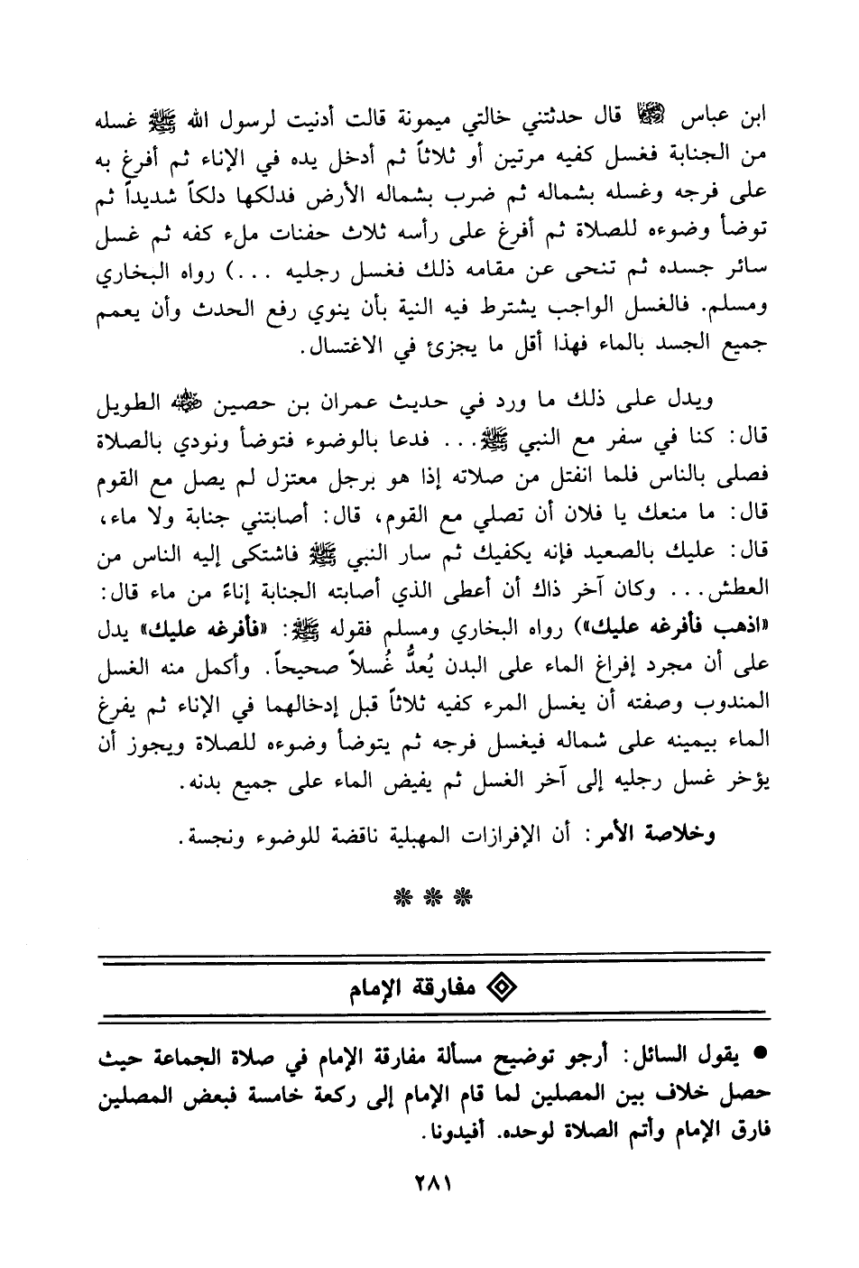 يقول السائل: أرجو توضيح مسألة مفارقة الإمام في صلاة الجماعة حيث حصل خلاف بين المصلين لما قام الإمام إلى ركعة خامسة فبعض المصلين فارق الإمام وأتم الصلاة لوحده. أفيدونا.