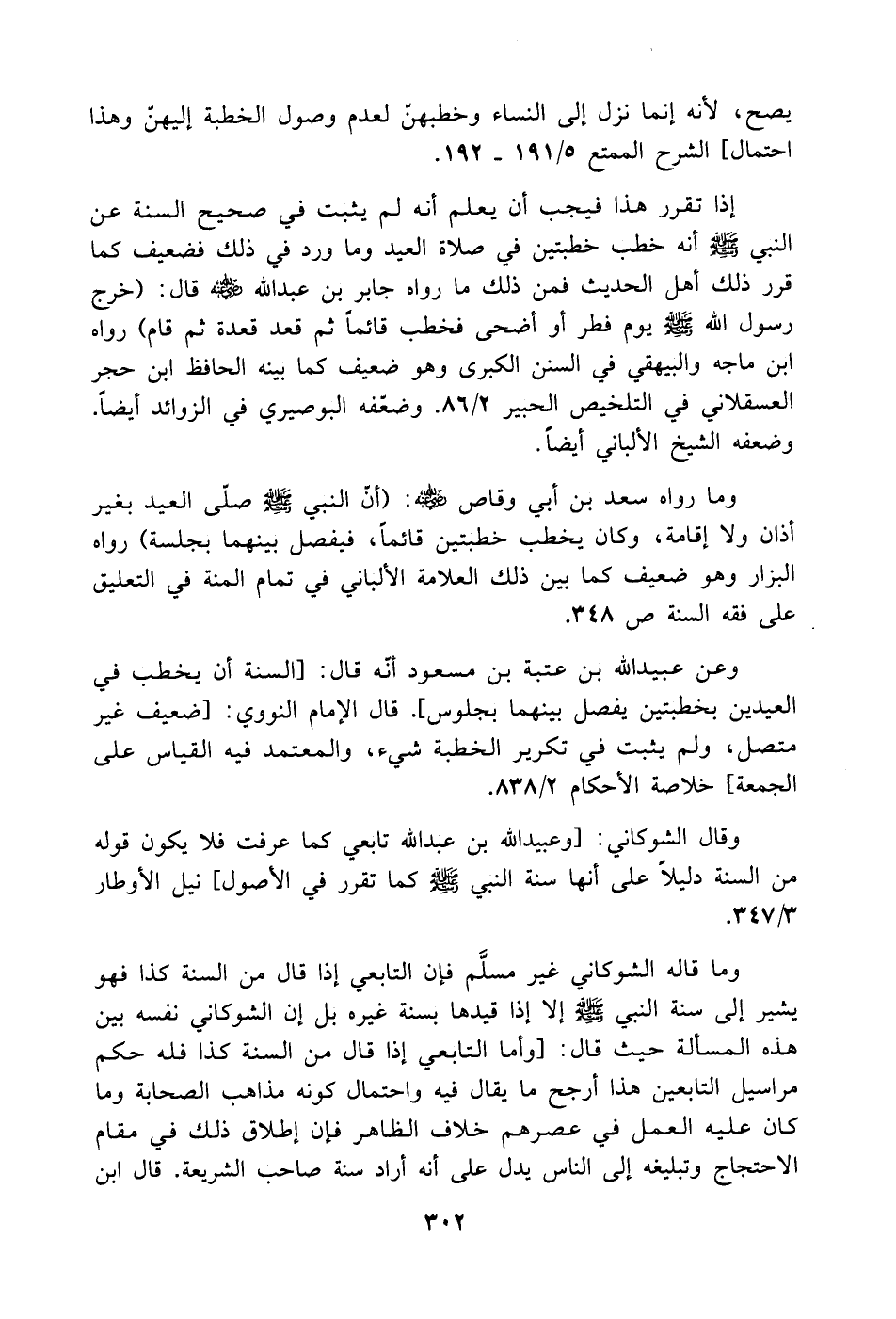 وعن عبيد الله بن عتبة بن مسعود أنّه قال: [السنة أن يخطب في العيدين بخطبتين يفصل بينهما بجلوس]. قال الإمام النووي: [ضعيف غير متصل، ولم يثبت في تكرير الخطبة شيء، والمعتمد فيه القياس على الجمعة] خلاصة الأحكام 2/ 838.