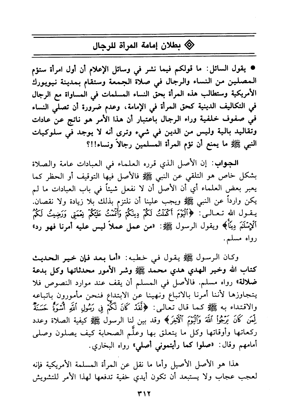 بطلان إمامة المرأة للرجال