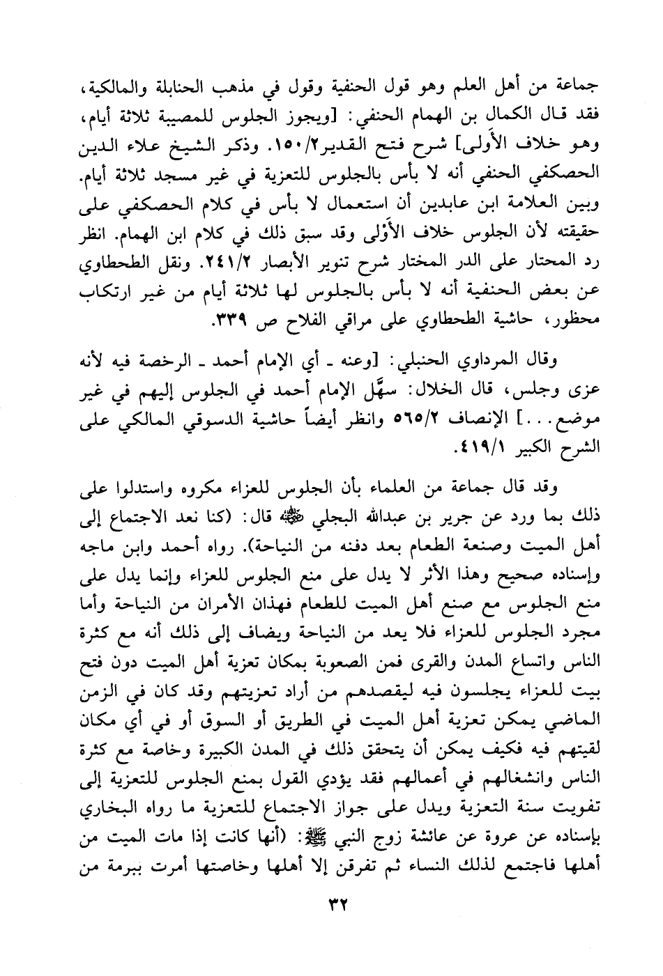 وقال المرداوي الحنبلي: [وعنه - أي الإمام أحمد- الرخصة فيه لأنه عزى وجلس، قال الخلال: سهَّل الإمام أحمد في الجلوس إليهم في غير موضع ... ] الإنصاف 2/ 565 وانظر أيضاً حاشية الدسوقي المالكي على الشرح الكبير 1/ 419.