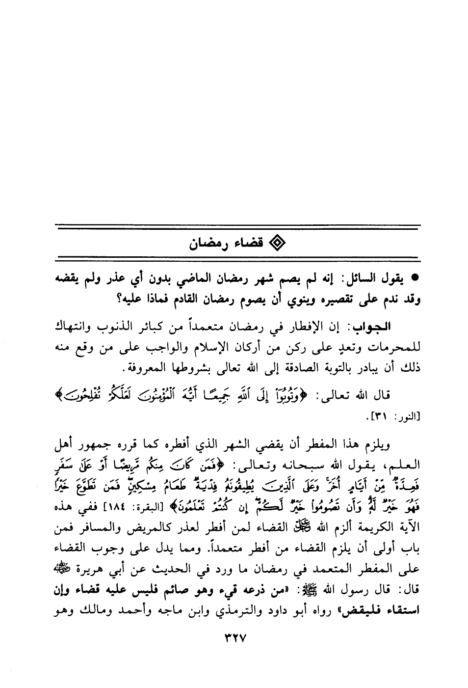 الجواب: إن الإفطار في رمضان متعمداً من كبائر الذنوب وانتهاك للمحرمات وتعدٍ على ركن من أركان الإسلام والواجب على من وقع منه ذلك أن يبادر بالتوبة الصادقة إلى الله تعالى بشروطها المعروفة.