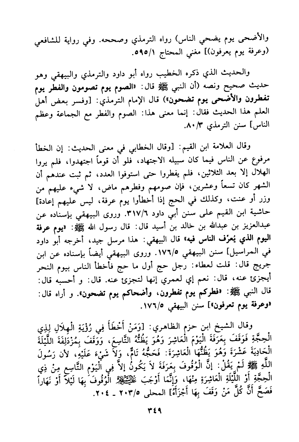 والأضحى يوم يضحي الناس) رواه الترمذي وصححه. وفي رواية للشافعي (وعرفة يوم يعرفون)] مغني المحتاج 1/ 595.