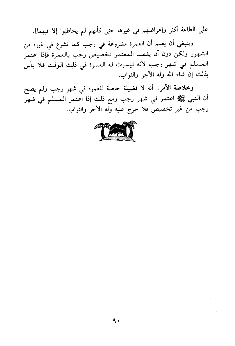 وخلاصة الأمر أنه لا فضيلة خاصة للعمرة في شهر رجب ولم يصح أن النبي - صَلَّى اللهُ عَلَيْهِ وَسَلَّمَ - اعتمر في شهر رجب ومع ذلك إذا اعتمر المسلم في شهر رجب من غير تخصيص فلا حرج عليه وله الأجر والثواب.