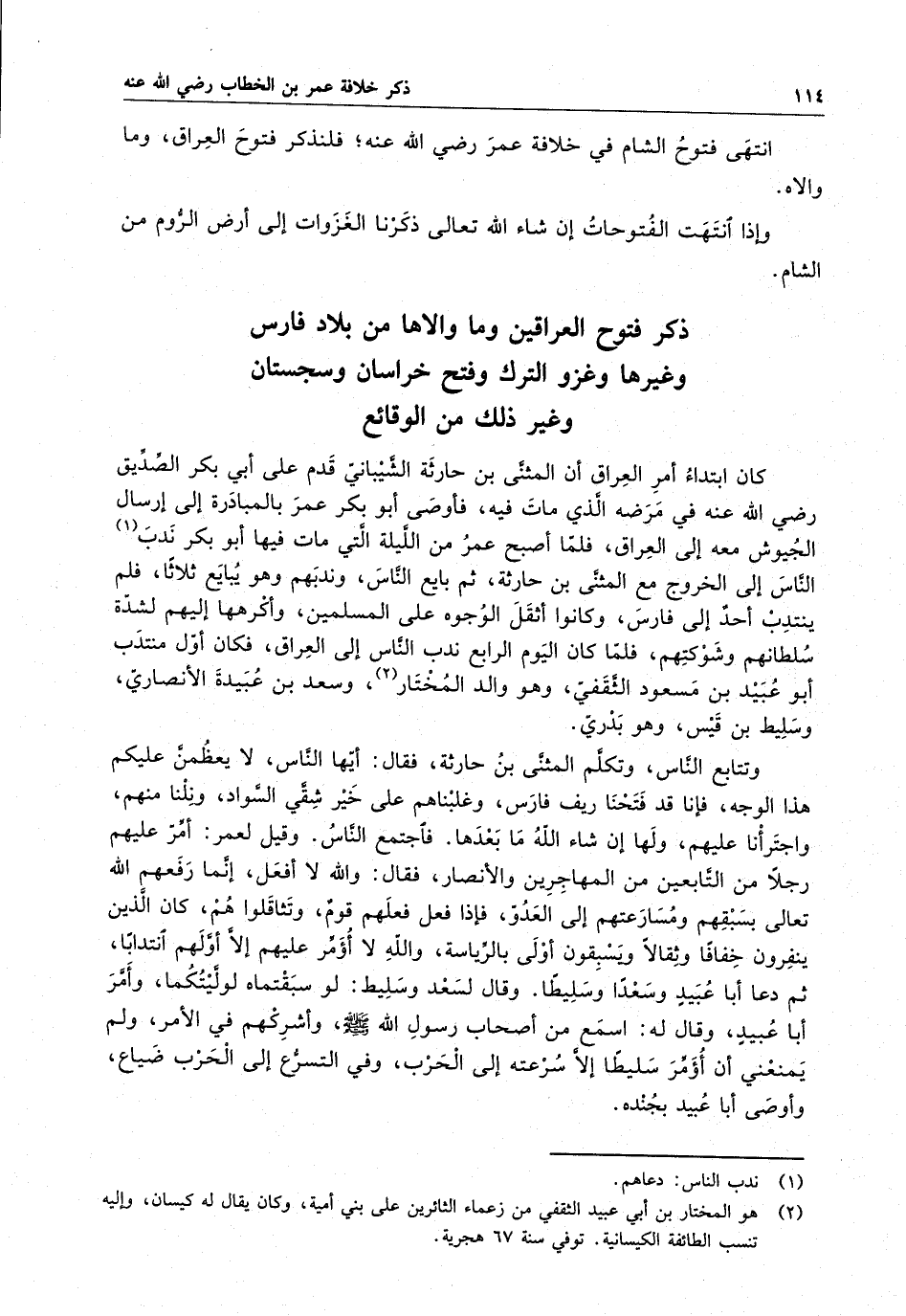 انتهى فتوح الشام في خلافة عمر رضي الله عنه ؛ فنذكر فتوح العراق ، وماوالاه .