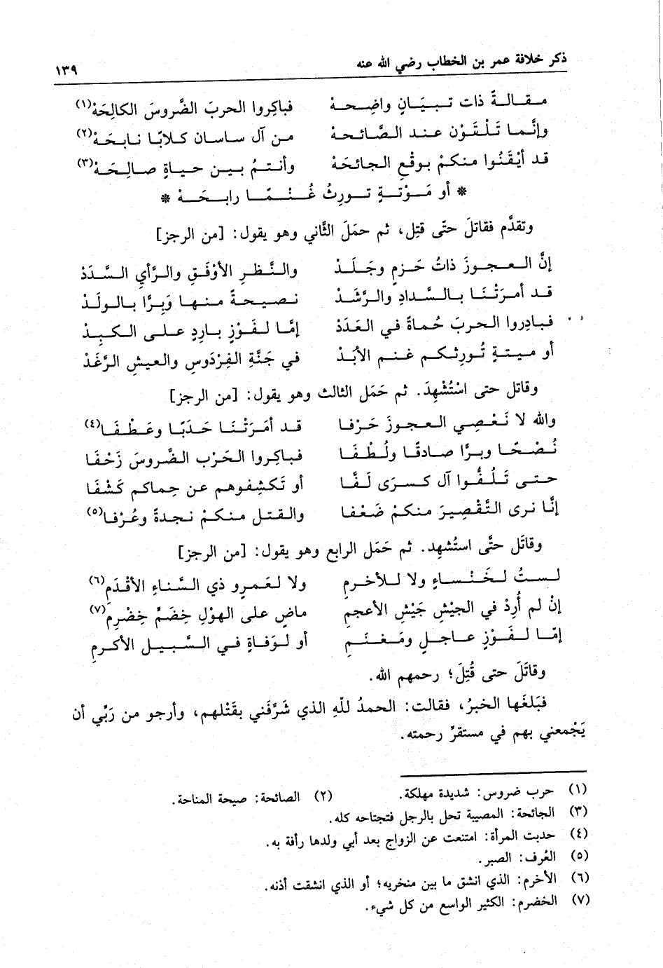 والله لا نعصى العجوز حرفا . . . قد أمرتنا حدبا وعطفا نصحا وبرا صادقا ولطفا . . . فباكروا الحرب الضروس زحفا