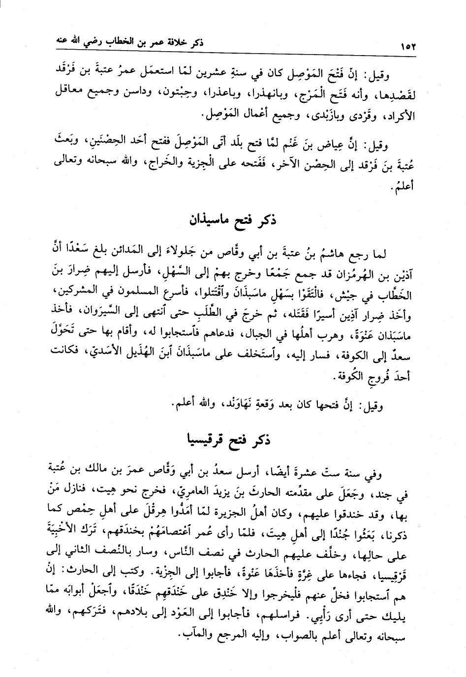 وقيل : إن عياض بن غنم لما فتح بلد أتى الموصل ففتح أحد الحصنين ، وبعث عتبة بن فرقد إلى الحصن الآخر ، ففتحه على الجزية والخراج ، والله سبحانه وتعالى أعلم .