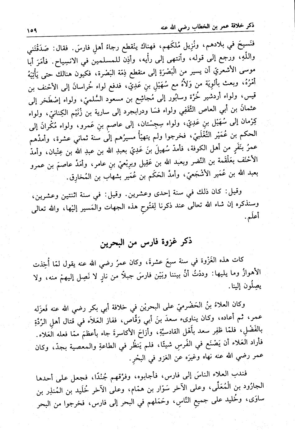 وكان العلاء بن الحضرمي على البحرين في خلافة أبي بكر رضي الله عنه فعزله عمر ، ثم أعاده ، وكان يناوئ سعد بن أبي وقاص ، ففاز العلاء في قتال أهل الردة بالفضل ، فلما ظفر سعد بأهل القادسية ، وأزاح الأكاسرة جاء بأعظم مما فعله العلاء . فأراد العلاء أن يصنع في الفرس شيئاً ، فلم ينظر في الطاعة والمعصية بجد ، وكان عمر رضي الله عنه نهاه وغيره عن الغزو في البحر .