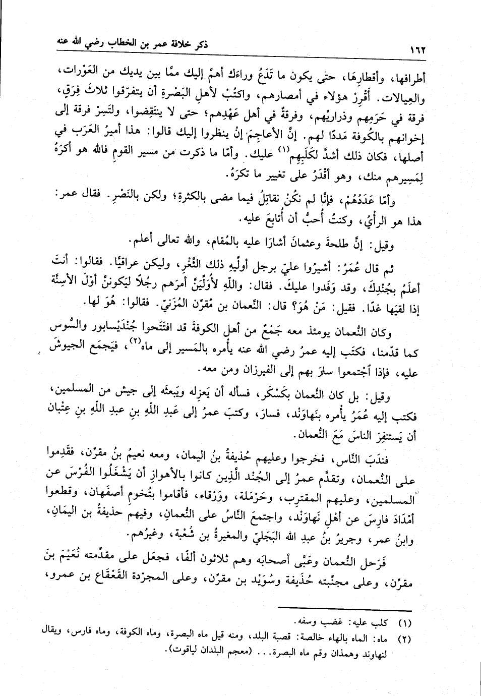 ثم قال عمر : أشيروا على برجل أوليه ذلك الثغر ، وليكن عراقياً . فقالوا : أنت أعلم بجندك ، وقد وفدوا عليك . فقال : والله لأولين أمرهم رجلاً ليكون ، أول الأسنة إذا لقيها غداً . فقيل من هو ؟ قال : النعمان بن مقرن المزني . فقالوا : هو لها .