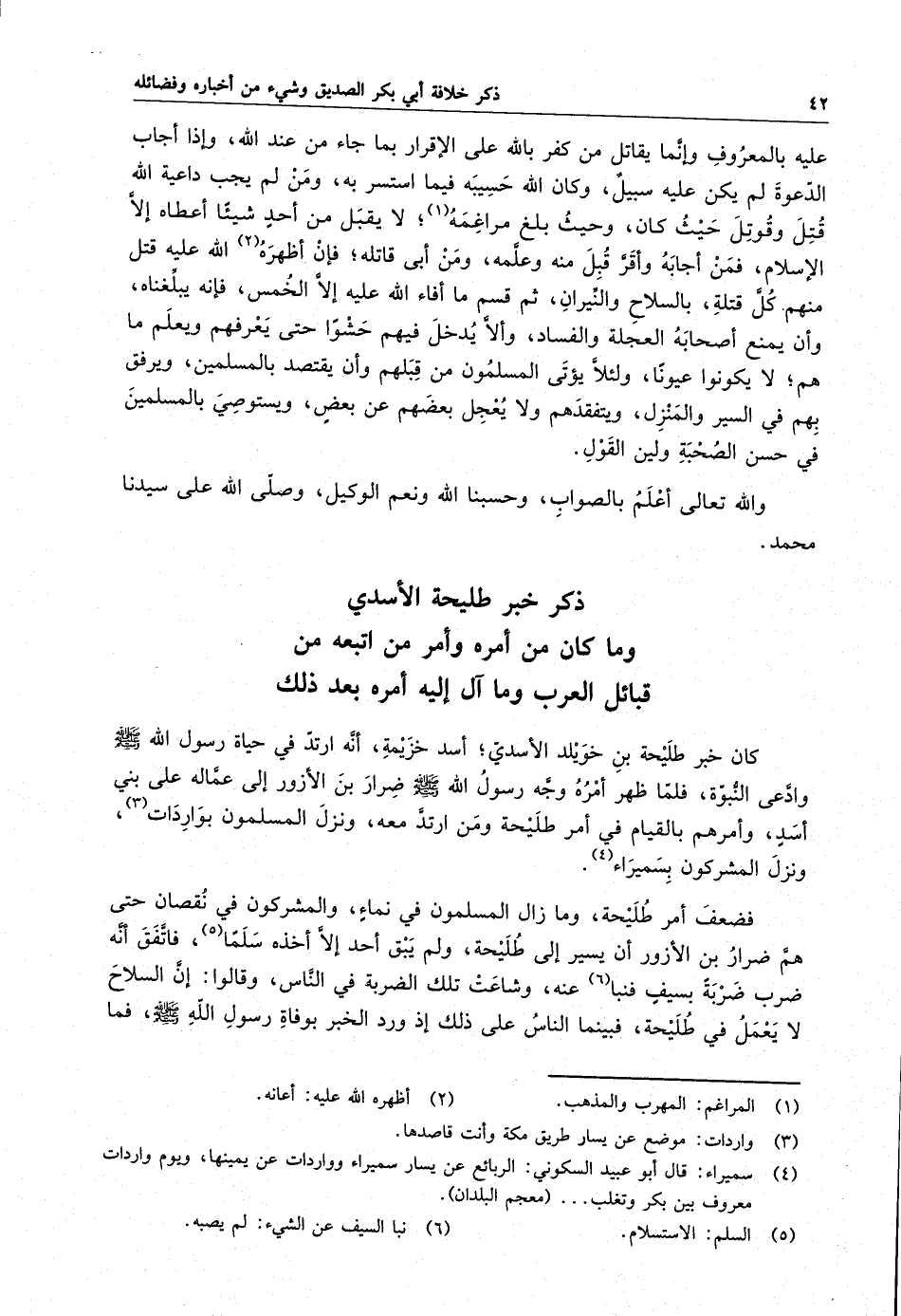 ذكر خبر طليحة الأسدى وما كان من أمره وأمر من اتبعه من قبائل العرب وما آل إليه أمره بعد ذلك
