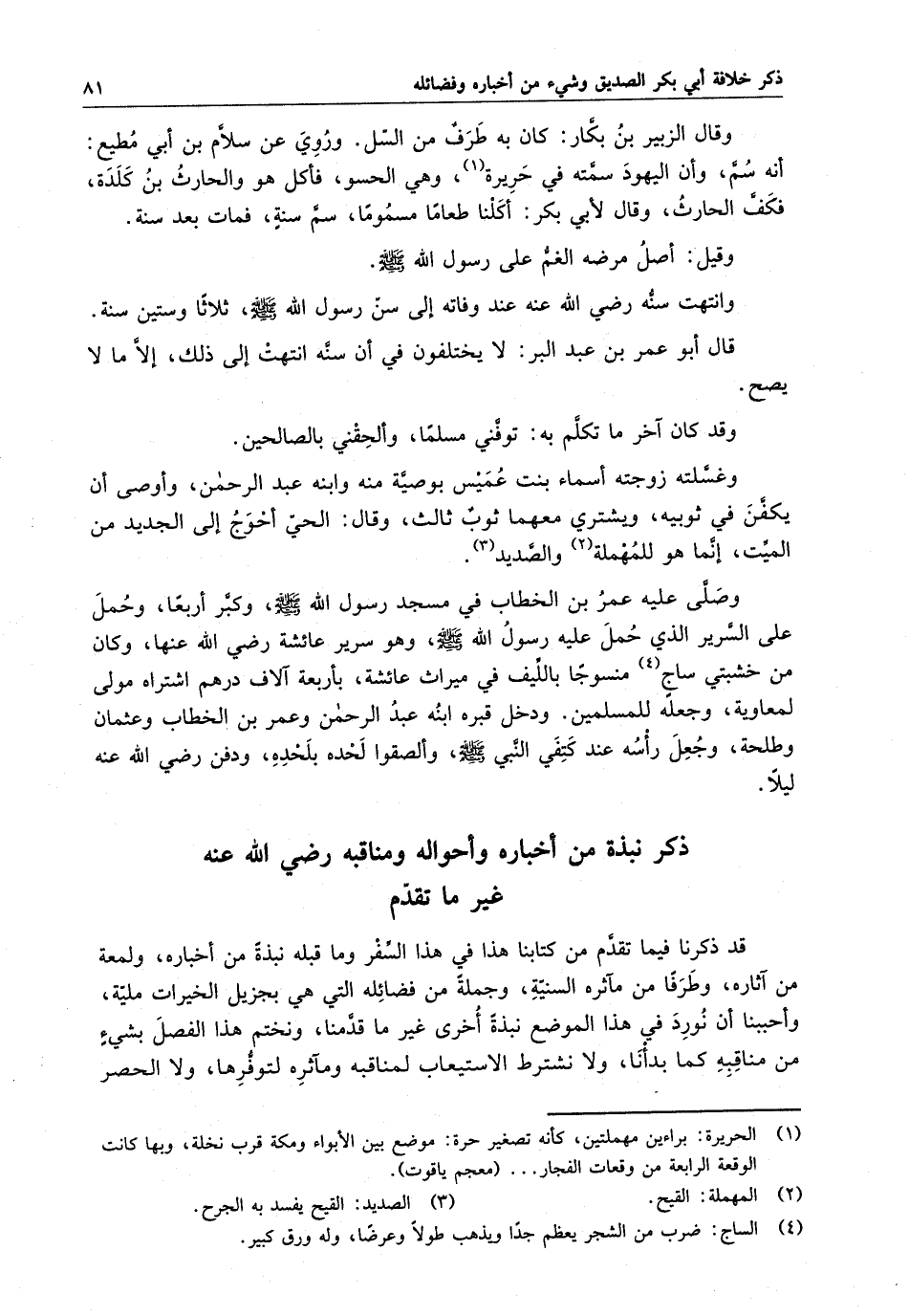 قد ذكرنا فيما تقدم من كتابنا هذا في هذا السفر وما قبله نبذة من أخباره ، ولمعة من آثاره ، وطرفاً من مآثره السنية ، وجملة من فضائله التي هي بجزيل الخيرات ملية ، وأحببنا أن نورد في هذا الموضع نبذة أخرى غير ما قدمنا ، ونتم هذا الفصل لشيء من مناقبة كما بدأنا ، ولا نشترط الاستيعاب لمناقبه ومآثره لتوفرها ، ولا الحصر