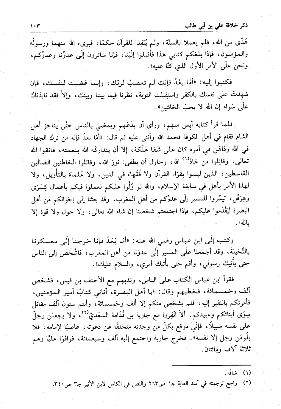 هدىً من الله ، فلم يعملا بالسنة ، ولم ينفذا للقرآن حكماً ، فبرئ الله منهما ورسوله والمؤمنون ، فإذا بلغكم كتابي هذا فأقبلوا إلينا ، فإنا سائرون إلى عدونا وعدوكم ، ونحن على الأمر الأول الذي كنا عليه " .