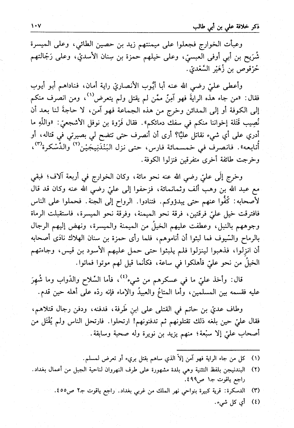 وطاف عدي بن حاتم في القتلى على ابنه طرفة ، فدفنه ودفن رجال قتلاهم ، فقال علي حين بلغه ذلك تقتلونهم ثم تدفنونهم ارتحلوا . فارتحل الناس ولم يقتل من أصحاب علي إلا سبعة ؛ منهم يزيد بن نوبرة وله صحبة وسابقة .