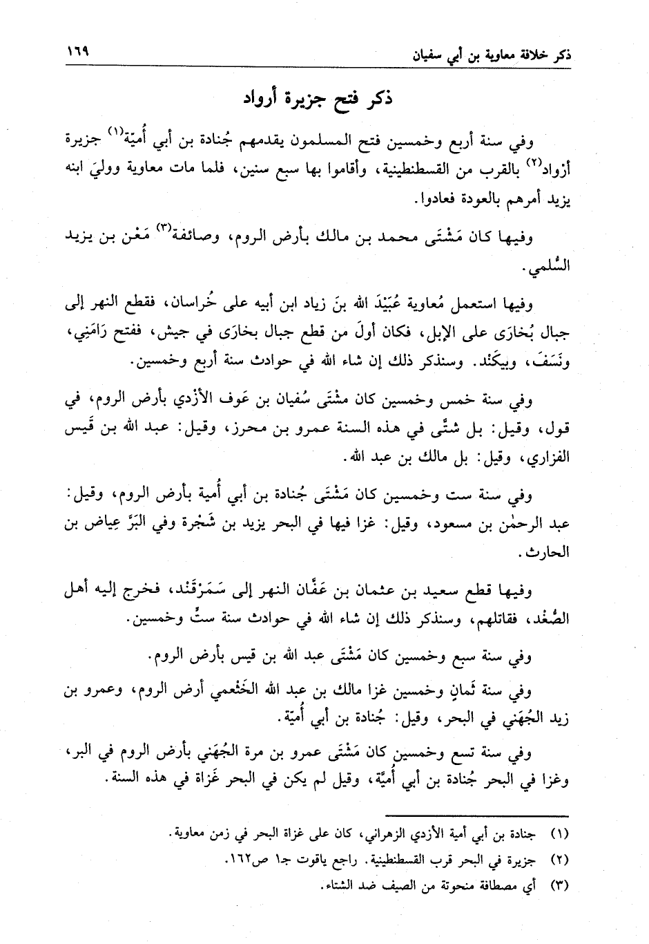 وفي سنة أربع وخمسين فتح المسلمون يقدمهم جنادة بن أبي أمية جزيرة أرواد بالقرب من القسطنطينية ، وأقاموا بها سبع سنين ، فلما مات معاوية وولي ابنه يزيد أمرهم بالعودة فعادوا .