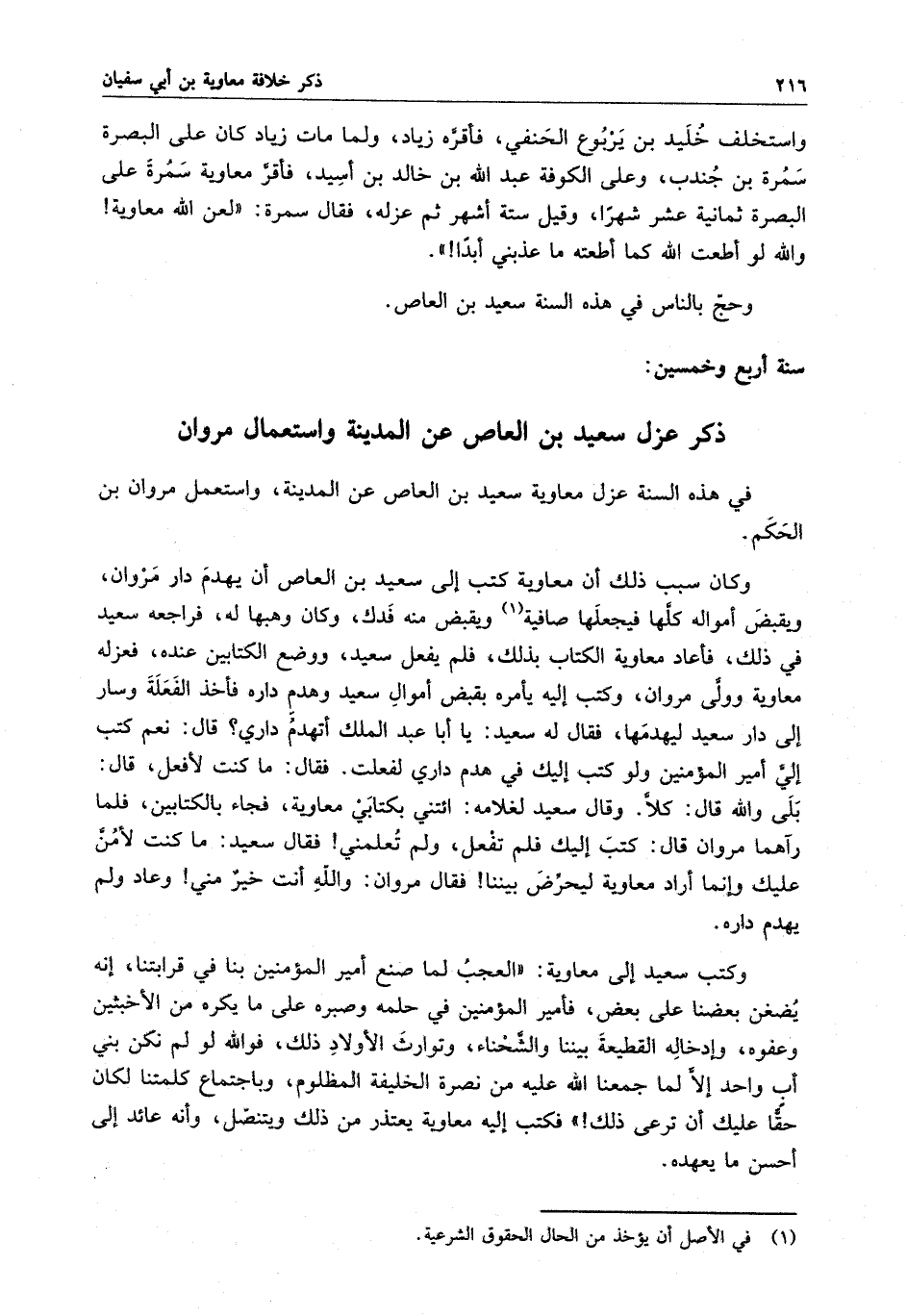 ذكر عزل سعيد بن العاص عن المدينة واستعمال مروان