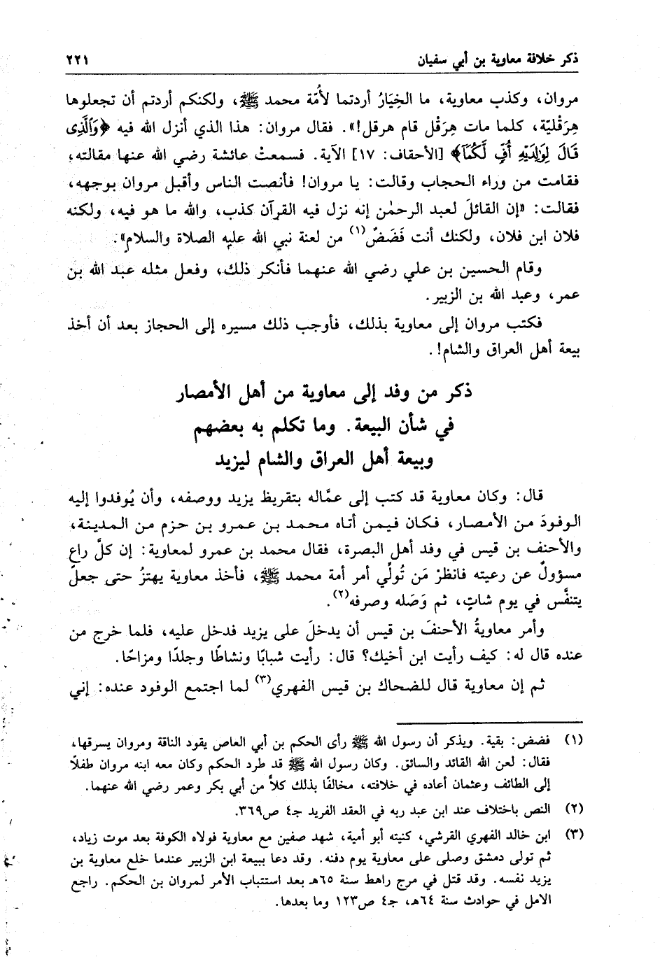 ذكر من وفد إلى معاوية من أهل الأمصار في شأن البيعة . وما تكلم به بعضهم وبيعة أهل العراق والشام ليزيد