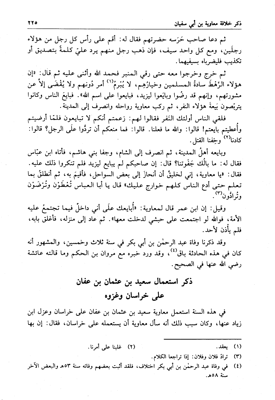 في هذه السنة استعمل معاوية سعيد بن عثمان بن عفان على خراسان وعزل ابن زياد عنها ، وكان سبب ذلك أنه سأل معاوية أن يستعمله على خراسان ، فقال : إن بها