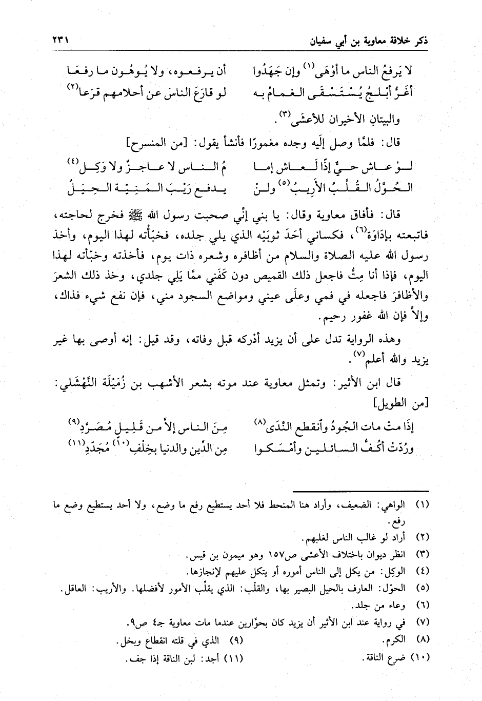 قال ابن الأثير : وتمثل معاوية عند موته بشعر الأشهب بن زميلة النهشلي :