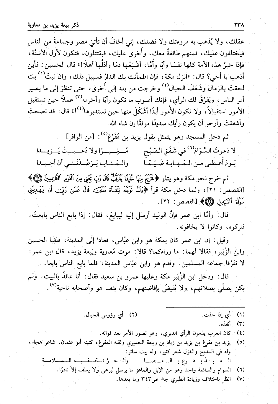 ثم دخل المسجد وهو يتمثل بقول يزيد بن مفرغ :