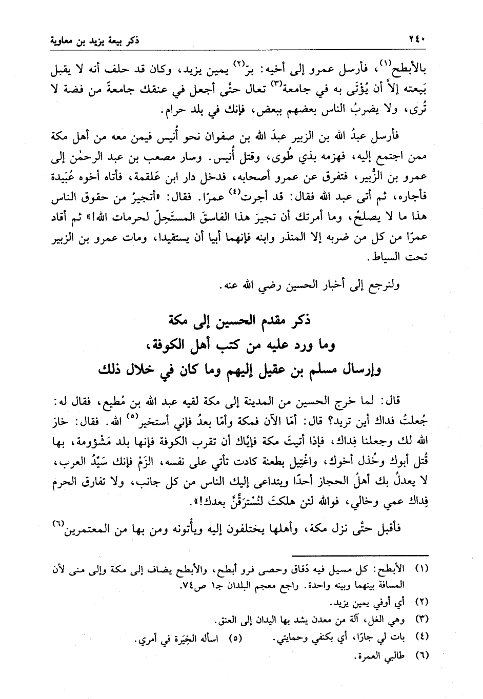 ولنرجع إلى أخبار الحسين رضي الله عنه .